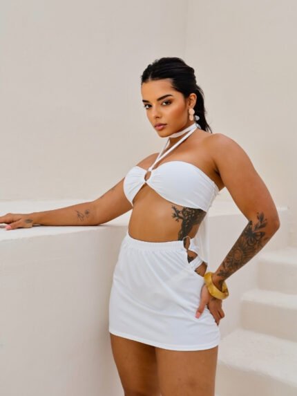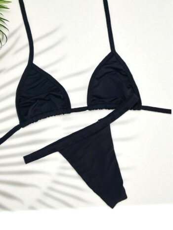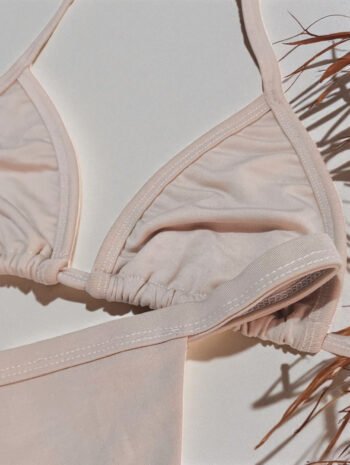 O top cortininha tradicional sem bojo oferece leveza e liberdade total de movimentos, valorizando o busto de forma natural. Já a calcinha fitinha sem regulagem tem modelagem que se ajusta ao corpo com delicadeza, garantindo o efeito “marquinha perfeita” que é sucesso nas praias.