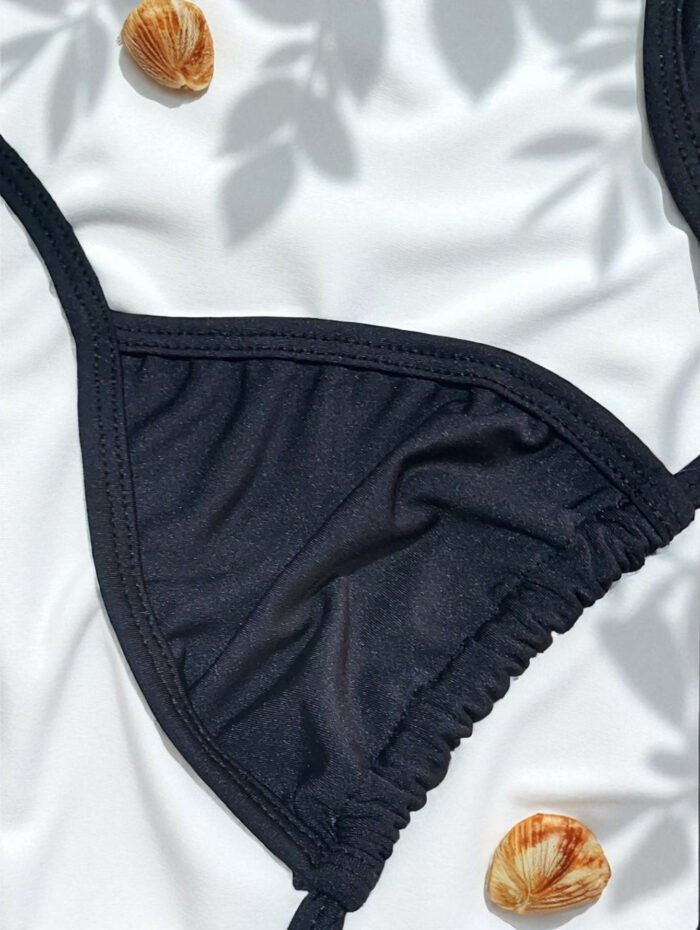 O top cortininha tradicional sem bojo oferece leveza e liberdade total de movimentos, valorizando o busto de forma natural. Já a calcinha fitinha sem regulagem tem modelagem que se ajusta ao corpo com delicadeza, garantindo o efeito “marquinha perfeita” que é sucesso nas praias.