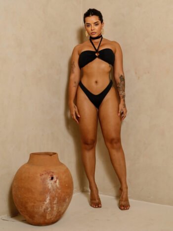 O destaque começa pelo top com modelagem oval, que valoriza o colo de forma moderna e delicada. Conta com bojo removível e elástico embutido, oferecendo sustentação e conforto para diferentes tipos de corpo. A calcinha asa delta com costura empina bumbum traz uma pegada retrô e sensual, realçando as curvas com atitude e sofisticação.