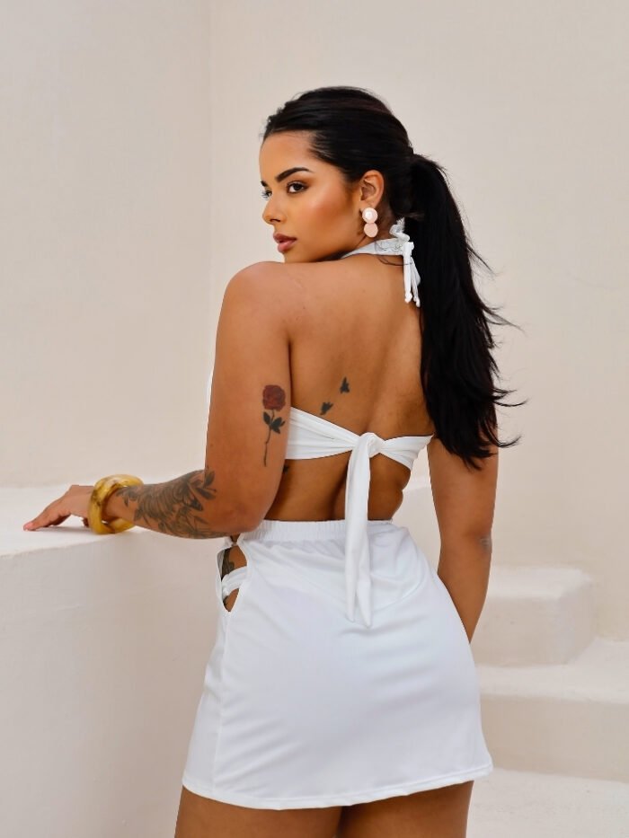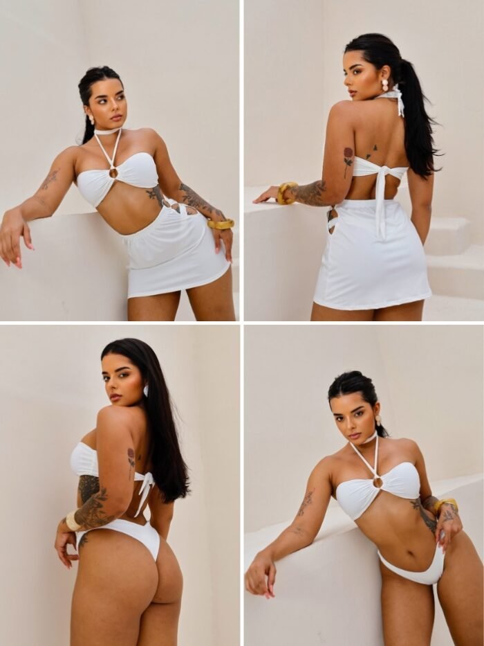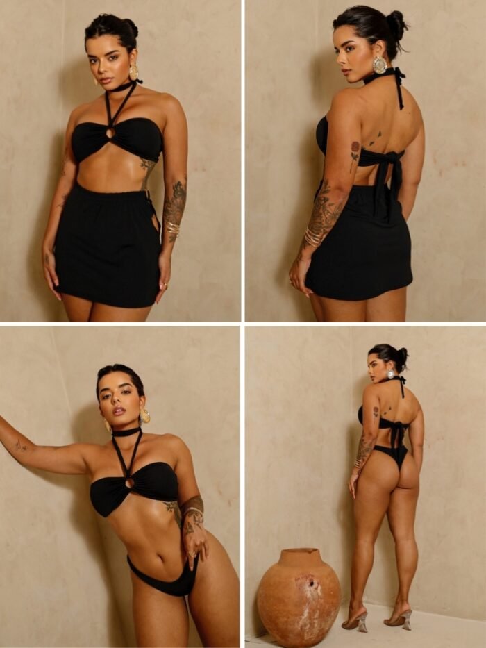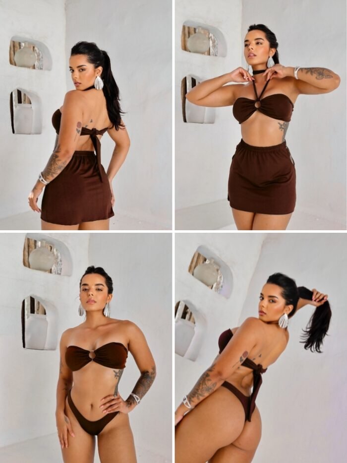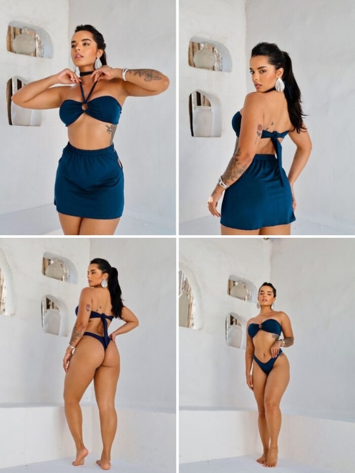 O Conjunto Cecília é a escolha perfeita para quem busca estilo, sensualidade e praticidade em um só look. Composto por 3 peças irresistíveis, ele entrega o visual completo para curtir o melhor da praia com elegância e liberdade.