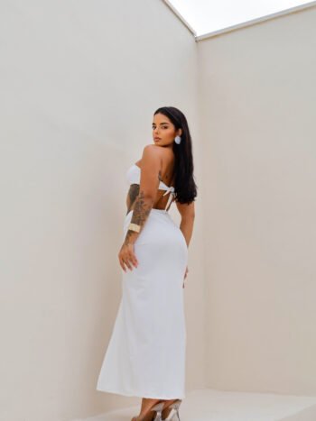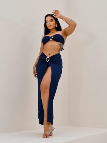 Para finalizar, a saia longa fluida é a peça-chave para transformar o biquíni em um look completo. Funciona como uma saída de praia leve e charmosa, perfeita para quem não abre mão de estilo mesmo fora d’água.