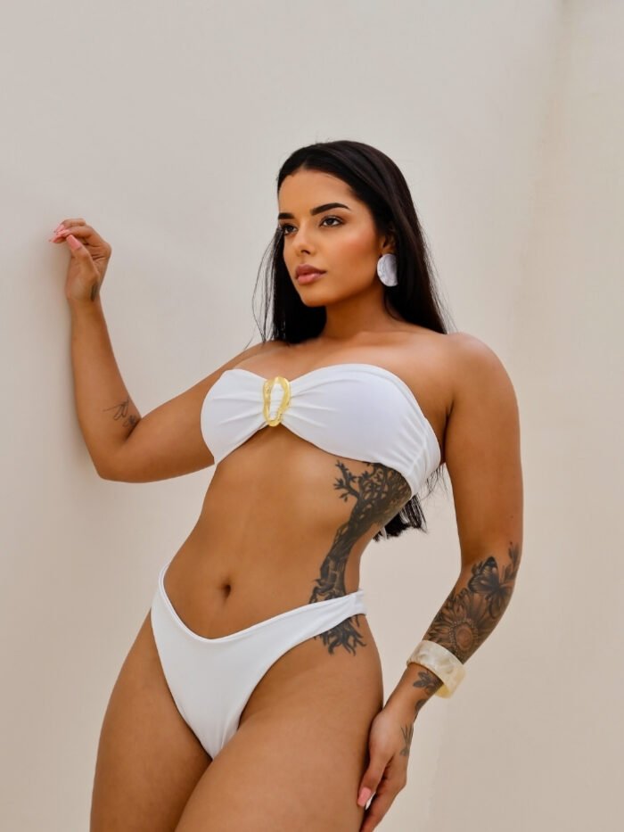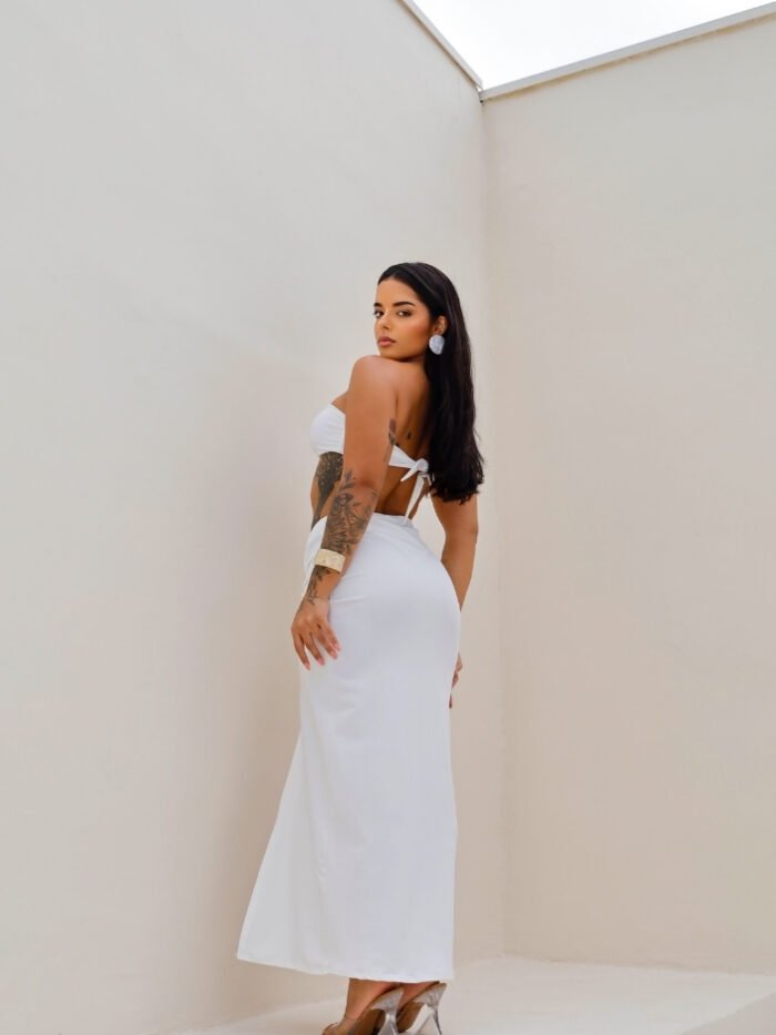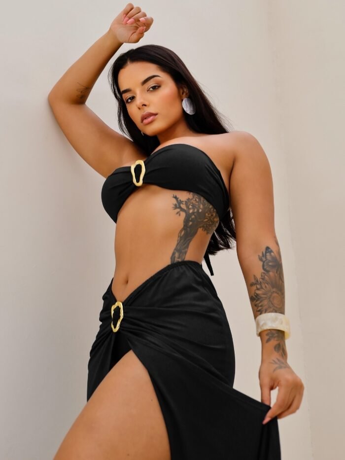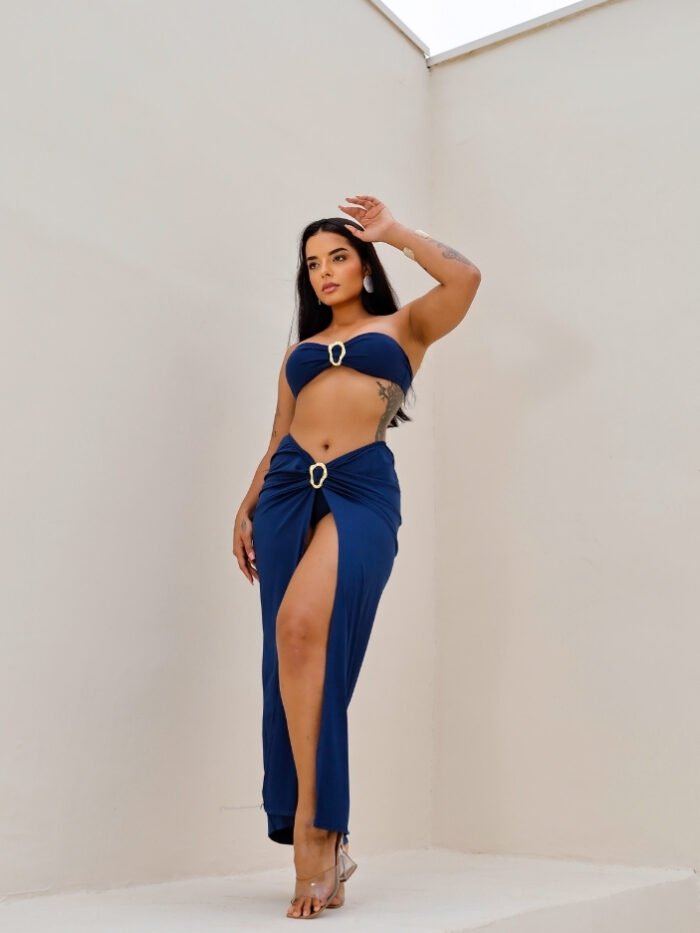 O Conjunto Katarina foi criado para mulheres que amam um visual elegante, fluido e atemporal. Com 3 peças que se complementam perfeitamente, ele é a escolha ideal para compor um look poderoso, leve e refinado — do mergulho ao pôr do sol.