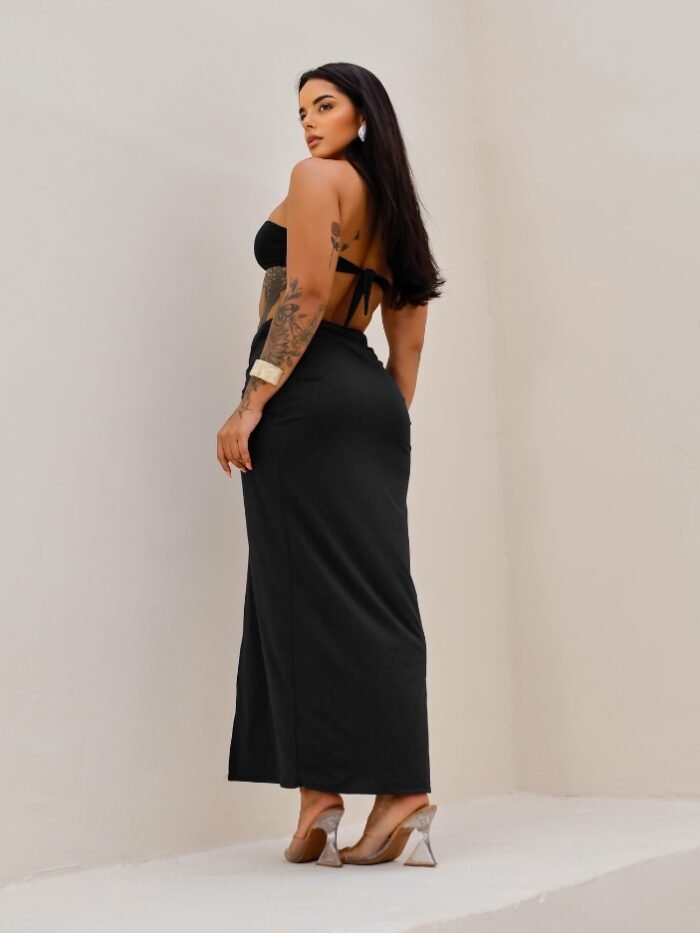 Para finalizar, a saia longa fluida é a peça-chave para transformar o biquíni em um look completo. Funciona como uma saída de praia leve e charmosa, perfeita para quem não abre mão de estilo mesmo fora d’água.